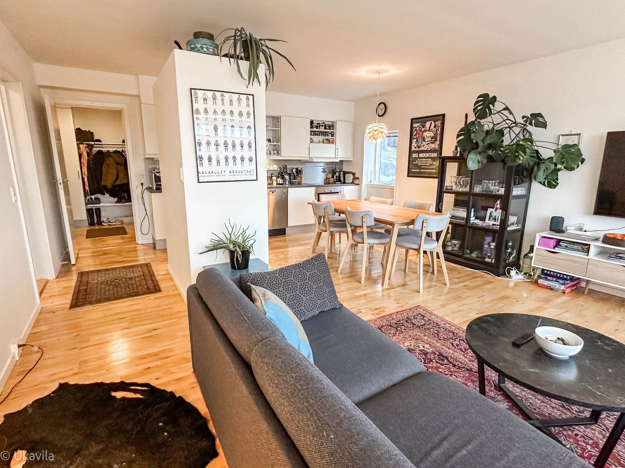 Når du træder ind i lejligheden, mødes du af et lyst og harmonisk hjem med en gennemtænkt planløsning. Køkken og stue er forbundet i et åbent og socialt opholdsrum, som indbyder til både hverdag og hyggelige stunder med familie og venner og to gode soveværelser – perfekt til både par, den lille familie eller som attraktiv udlejningsbolig.