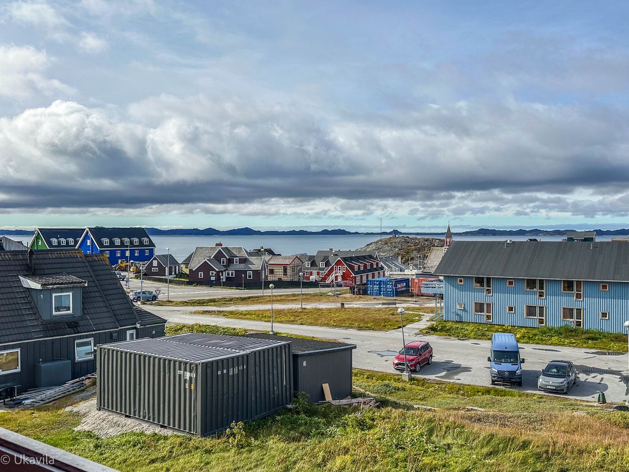 Et af værelserne har en fremragende udsigt mod Kolonihavnen, Hans Egede-statuen og fjorden.