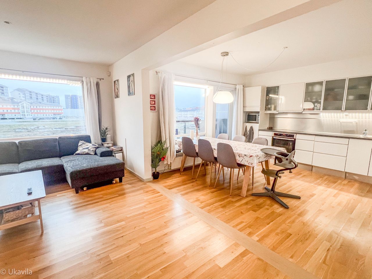 - Dejlig opholdsstue i åben planløsning med køkkenet