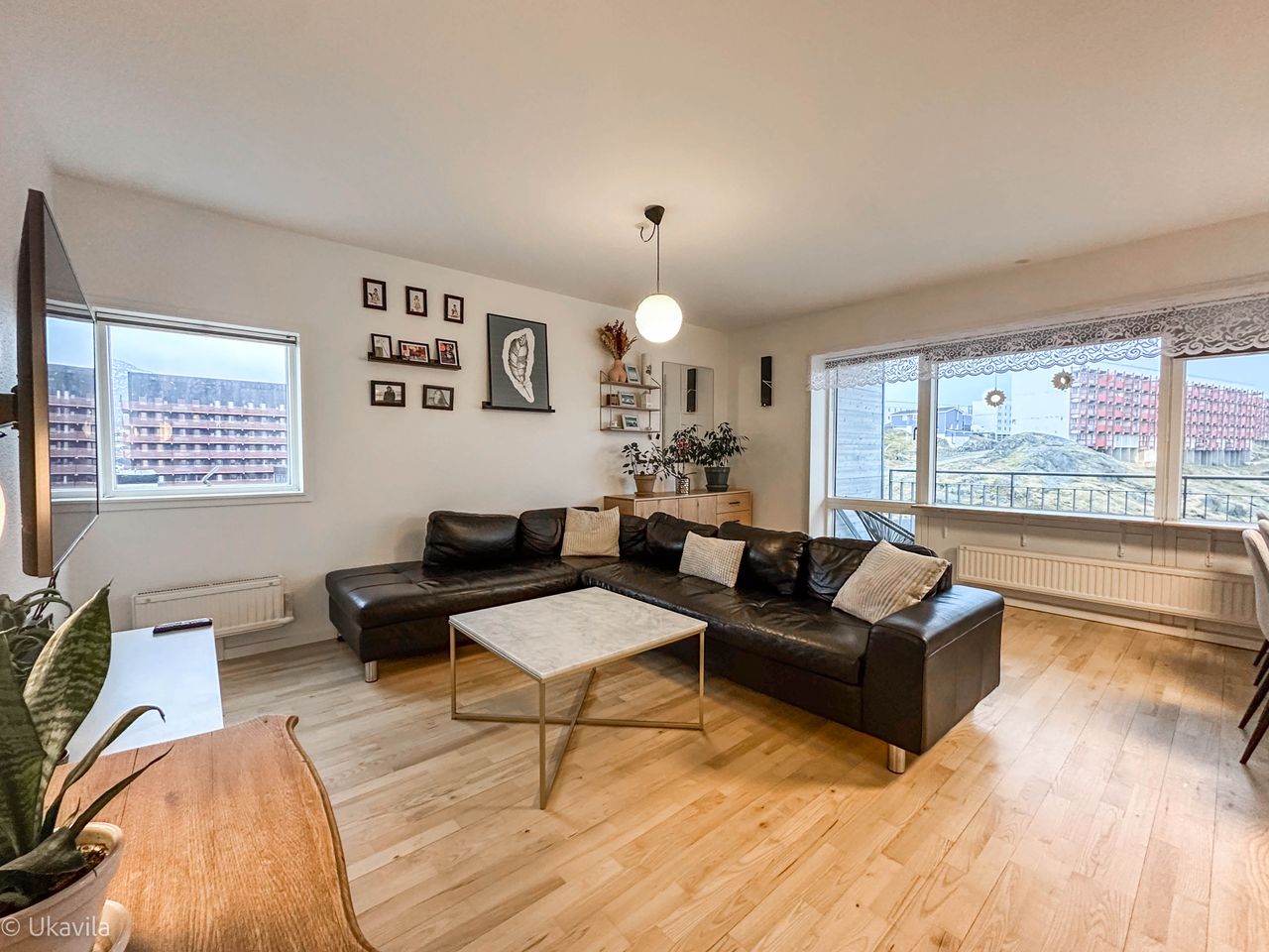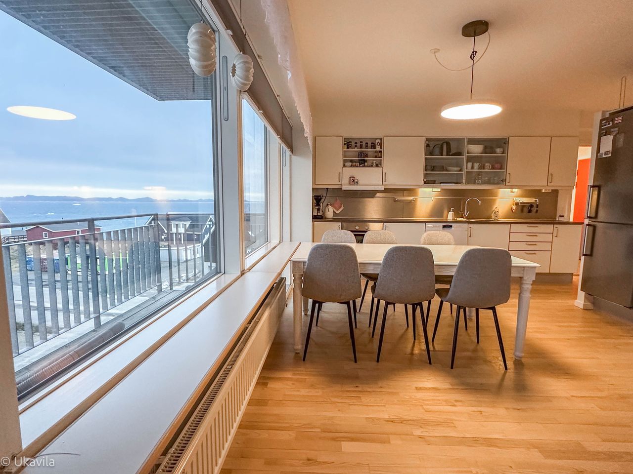 Velkommen til en særdeles velbeliggende og velindrettet 3-rums ejerlejlighed i det eftertragtede Tuapannguit. Her får du en bolig, hvor lys, udsigt og nærhed til både natur og byliv går op i en højere enhed. Lejligheden har en skøn sydvendt altan, som giver optimalt lysindfald dagen igennem – og en flot udsigt mod fjorden, som skaber en rolig og naturlig atmosfære i hjemmet.
