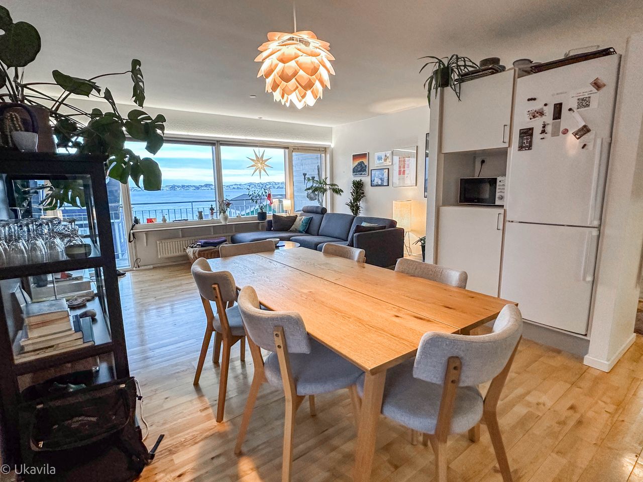 Denne indbydende 3-rums ejerlejlighed er beliggende i et af Nuuks mest efterspurgte områder. Her bor du i behagelig gåafstand til midtbyen og alle de muligheder, den har at tilbyde – caféer, restauranter, supermarkeder, biograf og meget mere – samtidig med at boligen ligger tilbagetrukket fra byens puls. Resultatet er en sjælden kombination af liv, bekvemmelighed og ro.